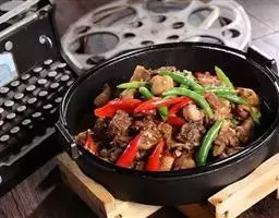5、如果有少量汤汁没关系,干锅菜一般都下面架个炉子,点火慢慢烧。