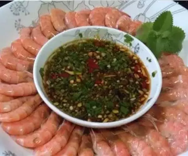 广州人喜欢用白灼之法来做虾,为的是保持其鲜、甜、嫩的原味,然后将虾剥壳蘸酱汁而食。