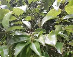 危害症状:果实、叶片和茎干表面覆盖大量黑色煤烟状菌丝和孢子,并生长在蜡蚧和粉虱分泌的蜜露上。