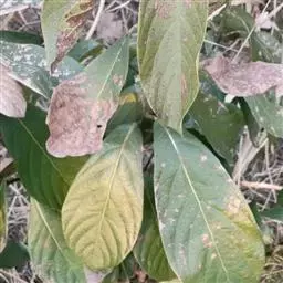 危害症状:可为害叶片、茎干和果实。侵染果实,在其表面形成枯斑或导致表皮开裂,裂缝可引起炭疽菌侵染。侵染叶片时,首先在叶面出现2-5毫米的枯斑,初褐色,后变为紫色,斑点扩展到叶片两面,形状不规则;严重时,枯斑连合形成较大枯斑。