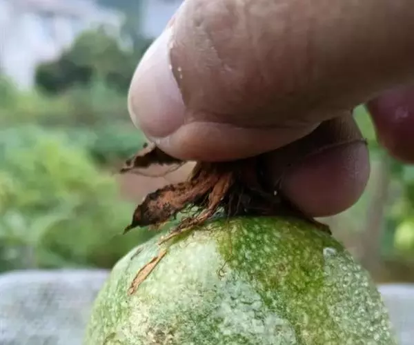 危害症状:果蒂首先感病,果实蒂部周围出现轻微枯萎;随果实成熟,病菌侵入果实,围绕果蒂出现明显的黑色腐烂,病健部分界明显。并逐渐扩展至整个果实表面,病菌侵入果肉,引起组织变色,降解,散发难闻气味,从而降低果实品质。