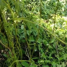 无根藤寄生缠绕草本植物,借盘状吸根攀附于寄主植物上。茎线形,稍木质,叶退化为微小的鳞片。…