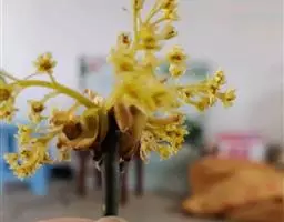 花淡绿带黄色,长5-6毫米,花梗长达6毫米,密被黄褐色短柔毛。花被两面密被黄褐色短柔毛,花被筒倒锥形,长约1毫米,花被裂片6,长圆形,长4-5毫米,先端钝,外轮3枚略小,均花后增厚而早落。能育雄蕊9,长约4毫米,花丝丝状,扁平,密被疏柔毛,花药长圆形,先端钝,4室,第一、二轮雄蕊花丝无腺体,花药药室内向,第三轮雄蕊花丝基部有一对扁平橙色卵形腺体,花药药室外向。退化雄蕊3,位于最内轮,箭头状心形,长约0.6毫米,无毛,具柄,柄长约1.4毫米,被疏柔毛。子房卵球形,长约1.5毫米,密被疏柔毛,花柱长2.5毫米,密被疏柔毛,柱头略增大,盘状。果大,通常梨形,有时卵形或球形,长8-18厘米,黄绿色或红棕色,外果皮木栓质,中果皮肉质,可食。花期2-3月,果期8-9月。