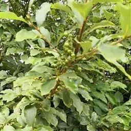 常绿乔木,耐阴植物。高约10米,树皮灰绿色,纵裂。叶互生,长椭圆形、椭圆形、卵形或倒卵形,长8-20厘米,宽5-12厘米,先端极尖,基部楔形、极尖至近圆形,革质,上面绿色,下面通常稍苍白色,幼时上面疏被下面极密被黄褐色短柔毛,老时上面变无毛下面疏被微柔毛,羽状脉,中脉在上面下部凹陷上部平坦,下面明显凸出,侧脉每边5-7条,上面微隆起,下面却十分凸出,横脉及细脉在上面明显下面凸出;叶柄长2-5厘米,腹面略具沟槽,略被短柔毛。聚伞状圆锥花序长8-14厘米,多数生于小枝的下部。具梗,总梗长4.5-7厘米,与各级序轴被黄褐色短柔毛;苞片及小苞片线形,长约2毫米,密被黄褐色短柔毛。