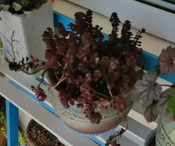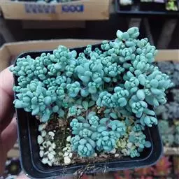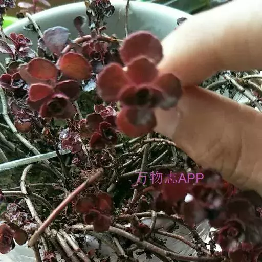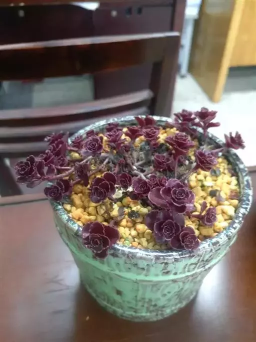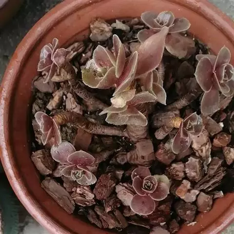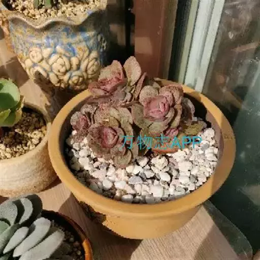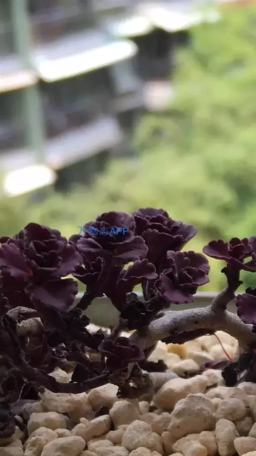 小球玫瑰(Phedimus spurius 'Schorbusser Blut')是景天科费菜属的多肉植物,也叫龙血景天。小球玫瑰有着精致纤巧的外形,耐寒和耐旱性非常好,并具有很强的繁殖能力,适宜作为护盆草或草坪草。在温差大、阳光充足的环境下,叶色会更加鲜艳,红彤彤的非常讨人喜爱。