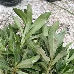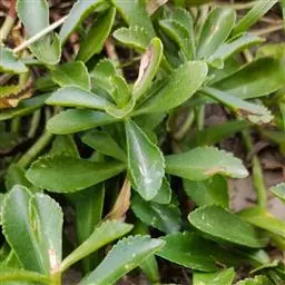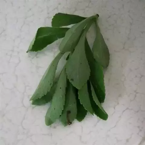 叶片表面无毛;竹片状至倒卵形或圆形,楔形,叶缘呈圆锯齿状;对生,偶有互生;无叶柄或有短柄。单片叶片长约1.5~3.5厘米,宽约1.0~1.2厘米。
