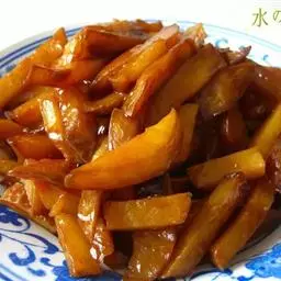 6. 放绿豆糕,加白砂糖翻炒,干湿看个人喜好。