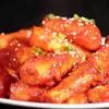 (3)蒸制:将装好糕粉的蒸屉四角垫起,依次叠起,放入特制的蒸锅内封严;把水烧开(不宜过开,以免糕色变红),蒸15分钟后取出,在每小块制品顶面中间,用适当稀释溶化的食用红色素液打一点红;然后将每屉分别平扣在操作台上,冷却后即成。