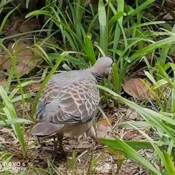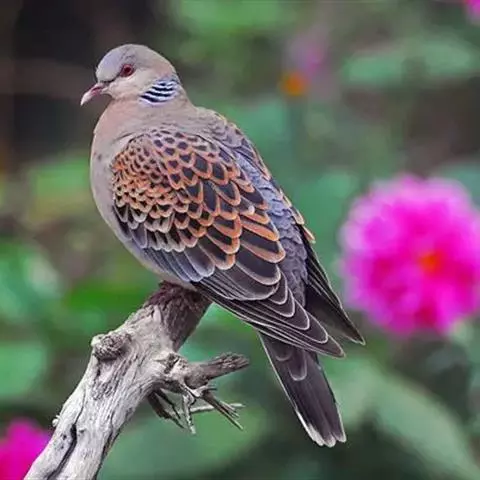 山斑鸠,是鸽形目鸽鸠科斑鸠属鸟类,又名金背斑鸠、棕背斑鸠、山鸠、金背鸠、麒麟斑、麒麟鸠、东方斑鸠、绿斑鸠、山鸽子。山斑鸠颈侧具明显黑白色条纹的块状斑,上体深褐色、具扇贝状斑纹,羽缘棕色,尾羽近黑色,下体多偏粉色。虹膜黄色,喙灰色,脚粉色。山斑鸠是留鸟,在中国常见且分布广泛。此外,还分布于不丹、尼泊尔、巴基斯坦、印度、日本等国。栖息于针阔混交林、季风常绿阔叶林、果园及农耕区,多成对活动于开阔农耕区、村舍、寺院周围及防火林带。取食于地面,主要觅食植物种子、果实、嫩芽等,也吃昆虫。山斑鸠飞翔时鼓翼快速,叫声为反复而低沉的“咕咕咕”声。繁殖期在4-7月,营巢于林中树上,通常一年繁殖2窝,窝卵数2枚,由雌雄亲鸟轮流孵卵,孵化期18~19天。山斑鸠的肉、卵可食,肉入药可益气明目、强筋壮骨,治久病气虚、衰弱无力、两目昏暗等病症。山斑鸠啄食杂草种子,对农田清除杂草有益;但有时也刨食农作物及树的种子。山斑鸠
