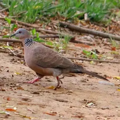 欧斑鸠体长27厘米,是一种体型略小的粉褐色斑鸠。颈侧具多黑白色细纹的斑块,翼覆羽深褐,…