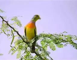 橙胸绿鸠体长24-29厘米,体重135-200克。是中等体型的绿鸠。黑色的翼上具醒目的黄色纵纹和翼缘。…