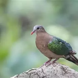 绿背金鸠体长约25厘米,是中等体型、尾甚短的地栖型斑鸠。下体粉红,头顶灰色,额白,腰灰,两翼具亮绿色。…