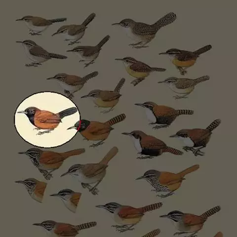 雌鸟上体为褐色和栗色相间横斑;颏、喉和胸淡栗色,被以褐色狭形横斑。其余下体近白色,具极细的暗灰色横斑。
