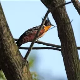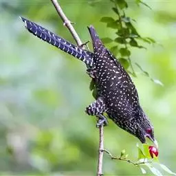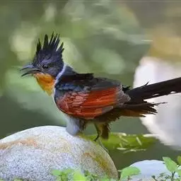 红翅凤头鹃:体长约38厘米,顶冠及凤头黑色,具显眼的直立凤头,背及尾黑色而带蓝色光泽,翅栗红色,…