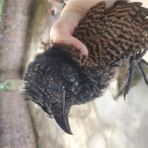 幼鸟上体淡黑灰色,具桂红和淡棕色横斑及斑点;尾淡黑色,外侧缀以一系列棕色横斑;颏、喉和胸淡棕色,具淡黑色细横斑和斑点;腹近白色,具黑褐色横斑。
