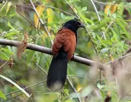 小鸦鹃,是杜鹃科、鸦鹃属的中型鸟类,体长30-40厘米,外形似褐翅鸦鹃,通体黑色,肩和翅栗色,…