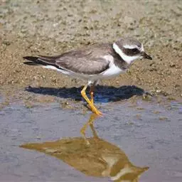 虹膜红褐色,雌鸟围以灰色和黄色。嘴褐色(冬季)或角褐色,下嘴基部橙色(夏季)。脚黄色,雌鸟深黄色。