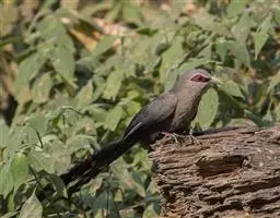 绿嘴地鹃:体形似小鸦鹃,但羽色大致绿灰;嘴绿色,头侧眼的周围有一裸区;后爪弯曲。虹膜赤红色,…