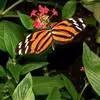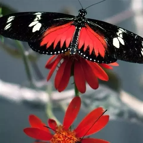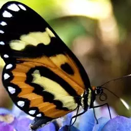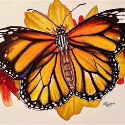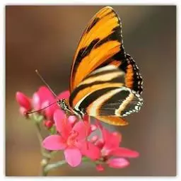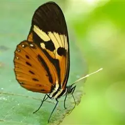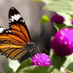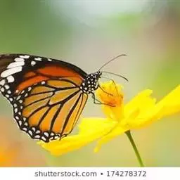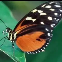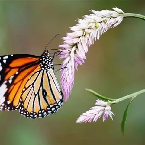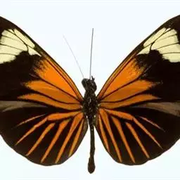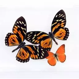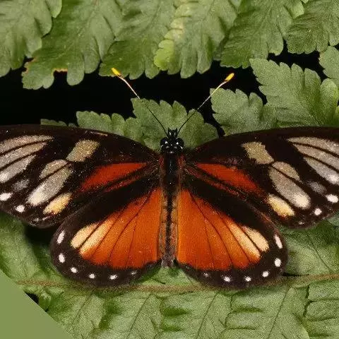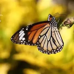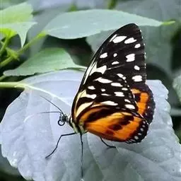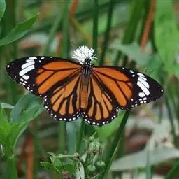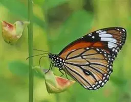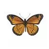 黑脉金斑蝶:翅阔8.6-12.4厘米。雄蝶较雌蝶为大。成年蝶颜色鲜艳,翅膀上有显眼的橙色及黑色斑纹…