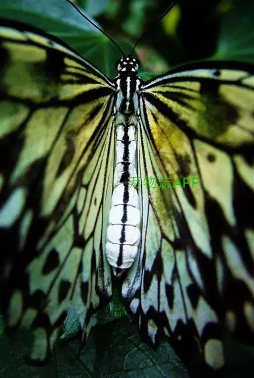 大帛斑蝶(Idea leuconoe),亦称大白斑蝶。动物界,昆虫纲,蛱蝶科帛斑蝶属的一种昆虫,分布在中国台湾及马来半岛、印度尼西亚等地。该物种飞行缓慢,常在天空乘气流滑翔旋转。一年四季都能看到成虫,以春秋两季居多。
