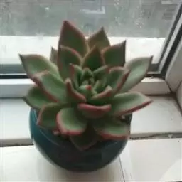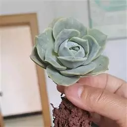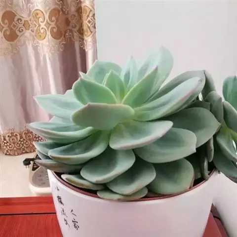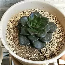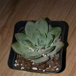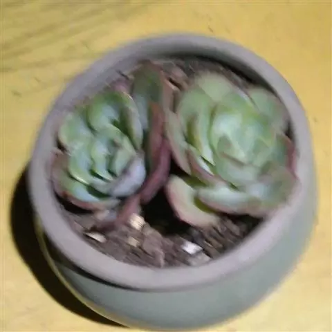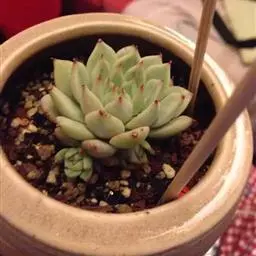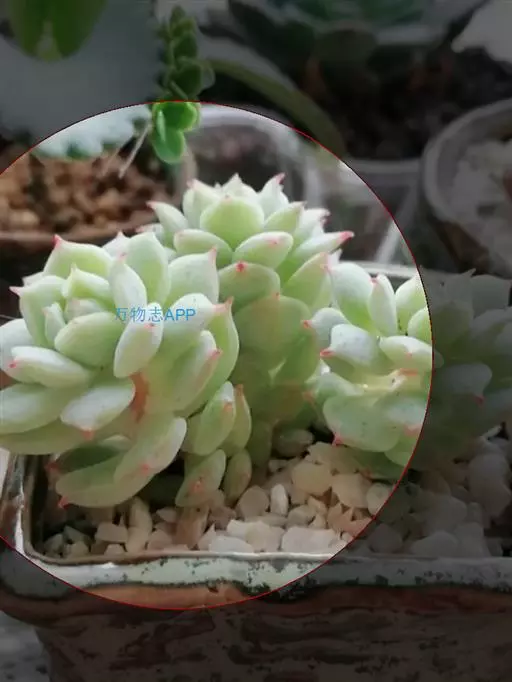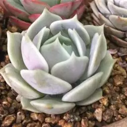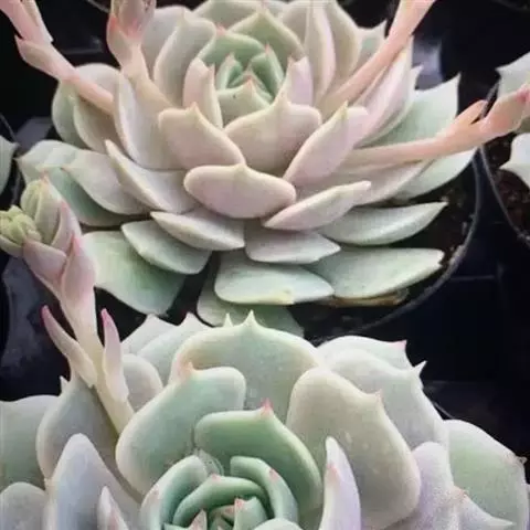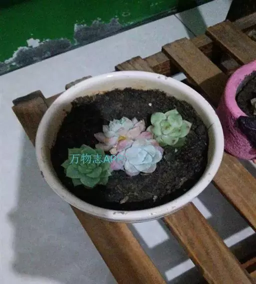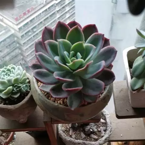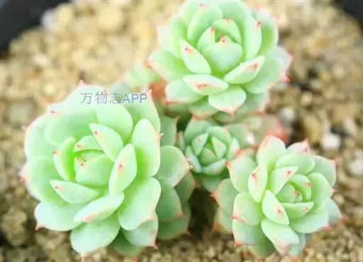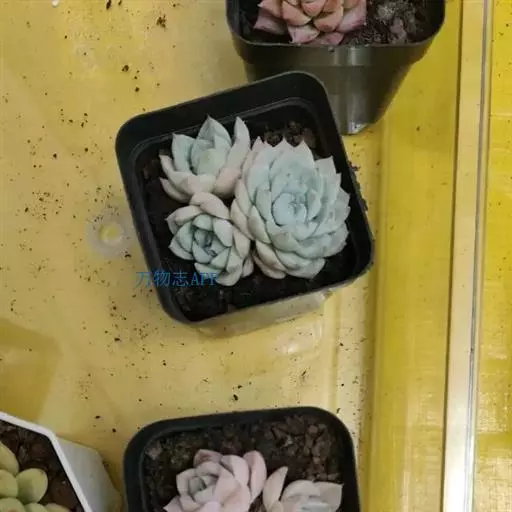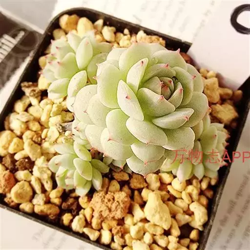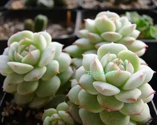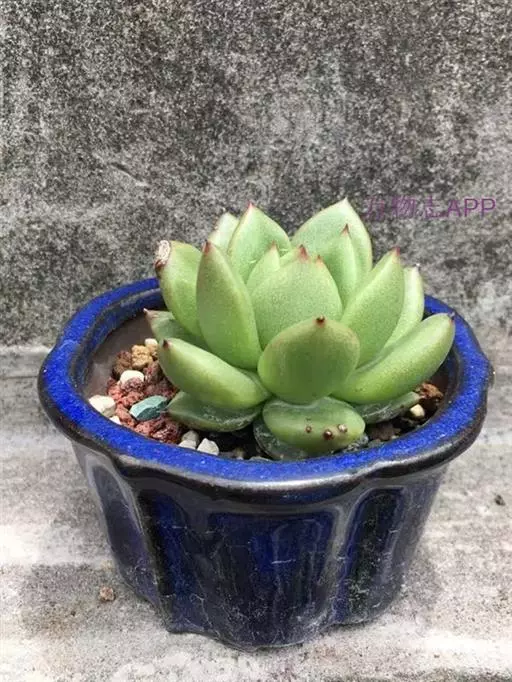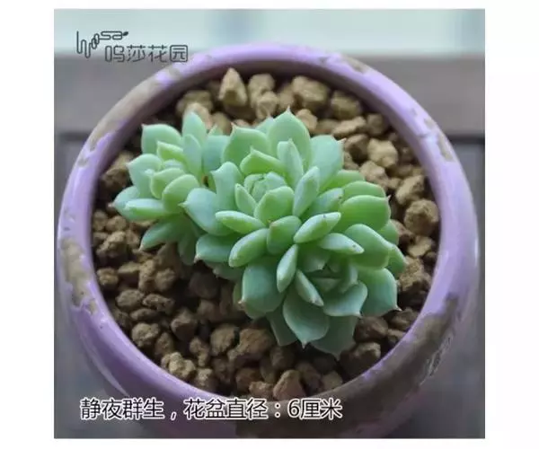 静夜小型品种,单个直径在6~8cm(也有大型静夜,可以长到12cm的直径),叶片浅绿色,叶尖上带一点红润。