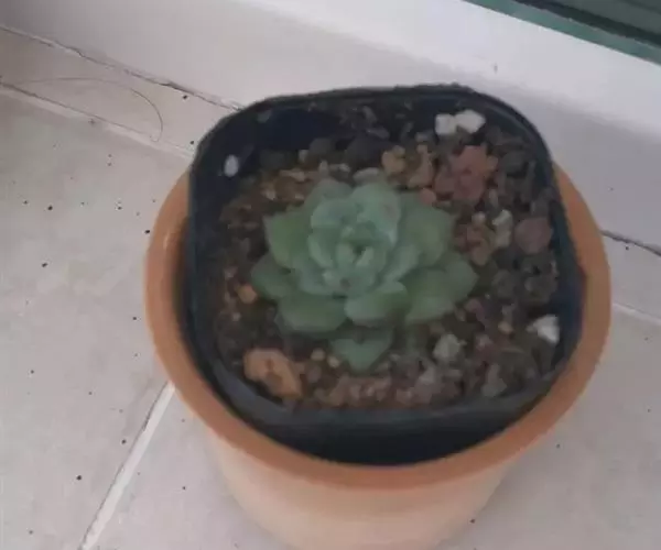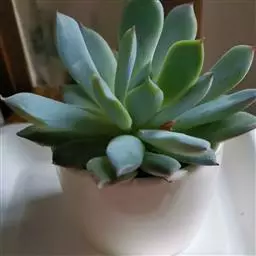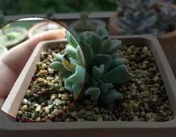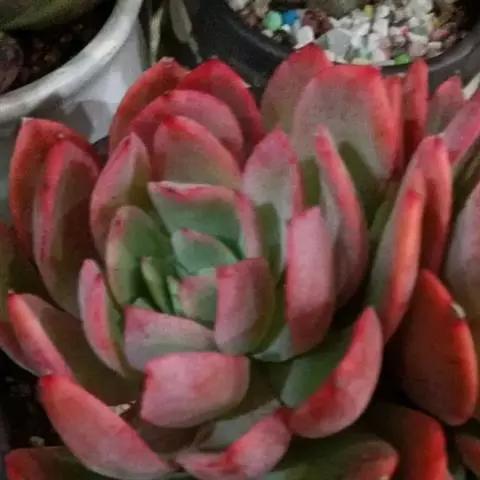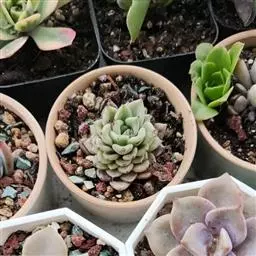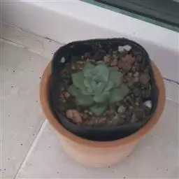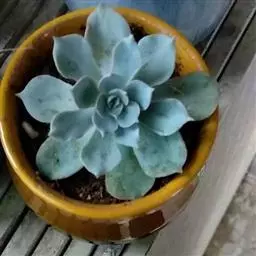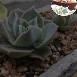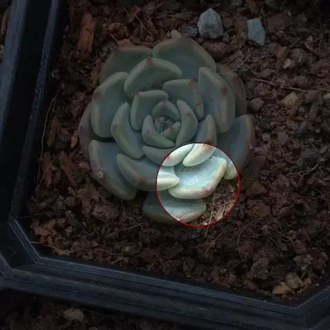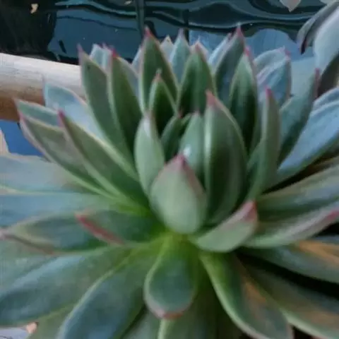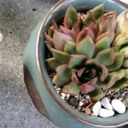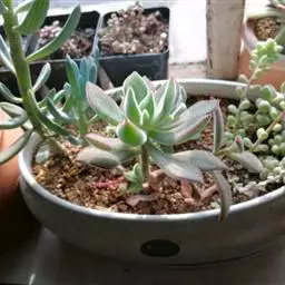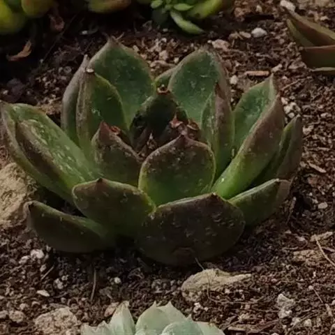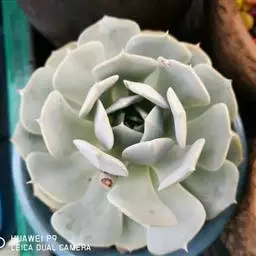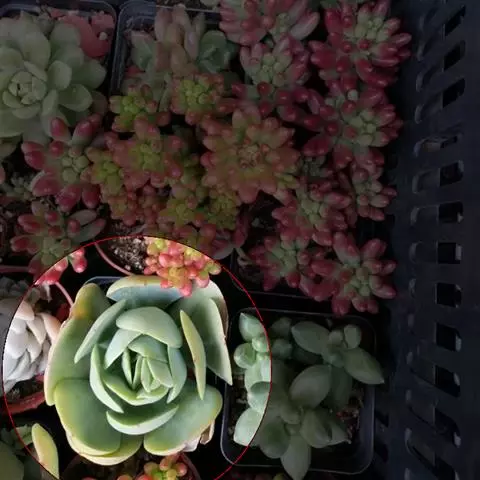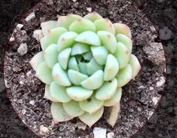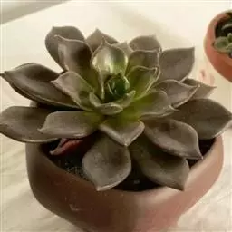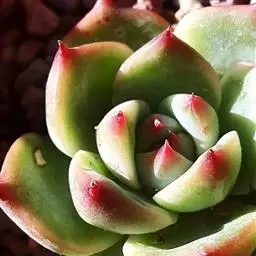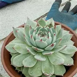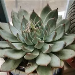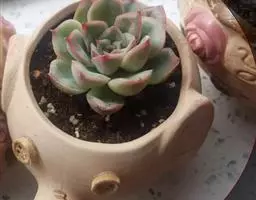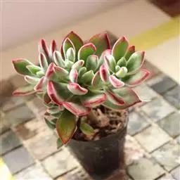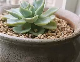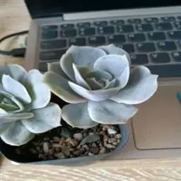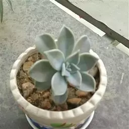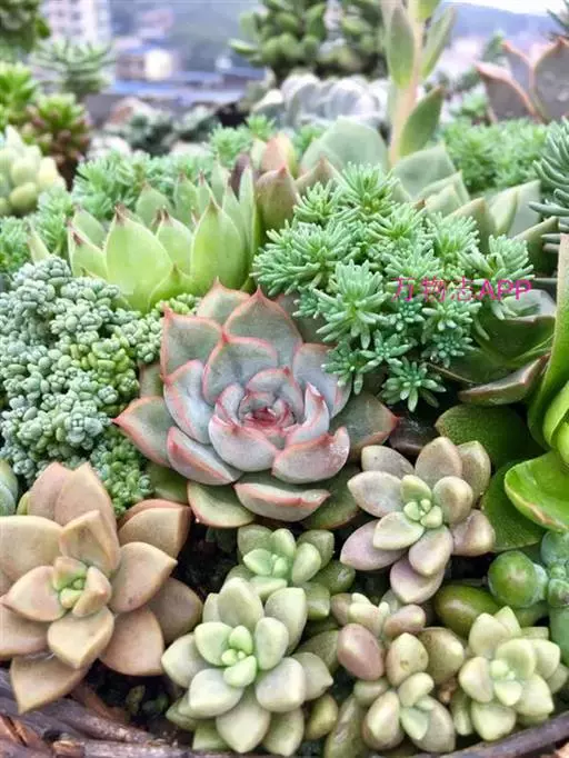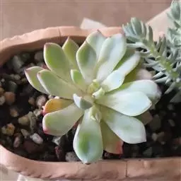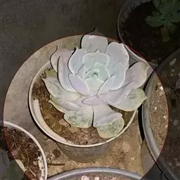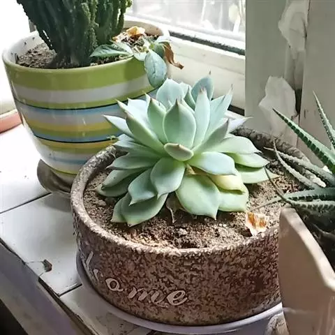 静夜小型品种,单个直径在6~8cm(也有大型静夜,可以长到12cm的直径),叶片浅绿色,叶尖上带一点红润。