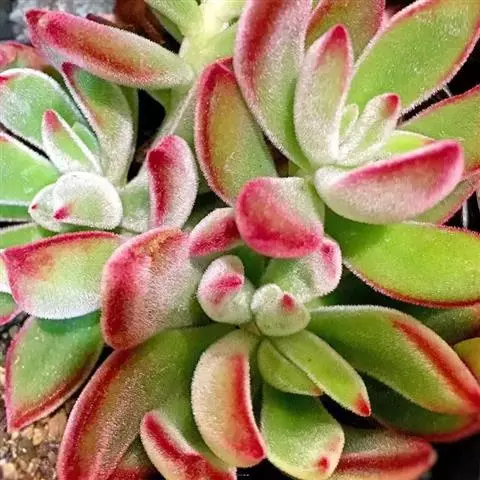 大和锦是景天科拟石莲花属的多肉植物。肉质叶排成紧密的莲座状,广卵形至散三角卵形,背面突起呈龙骨状,…