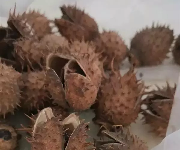 3 、大肠脱肛。用曼陀罗子连壳一对、橡斗十六个,同锉,水煎开三、五次,加入朴硝少许洗患处。