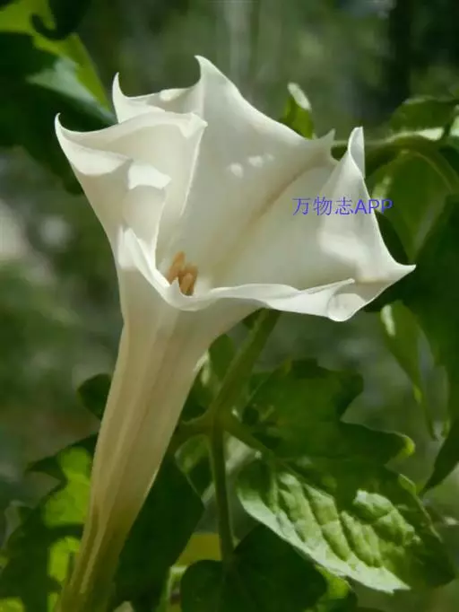 白色曼陀罗——情花,如用酒吞服,会使人发笑,有麻醉作用。是天上开的花,白色而柔软,见此花者,恶自去除。