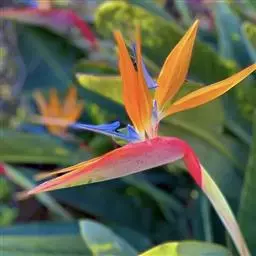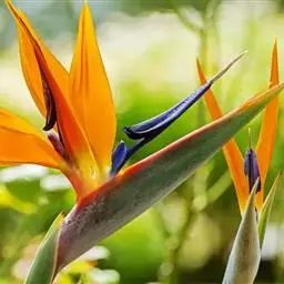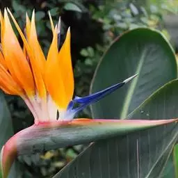 鹤望兰,别名天堂鸟,为鹤望兰科鹤望兰属的一种多年生草本植物;无木质树干;花序生于与叶柄近等长或稍短的花序梗上,佛焰苞1;花较小,萼片橙黄色,长7.5-10厘米,箭头状花瓣基部具耳状裂片,暗蓝色;花期在冬季。该物种原产非洲南部,在中国南方大城市的公园、花圃有栽培,北方则为温室栽培。性喜温暖湿润、阳光充足的气候,适宜生长的温度为25℃左右,耐干旱、较耐寒、不耐水湿,要求疏松肥沃、排水良好,以土层深厚的沙壤土为宜。因花形美丽似鹤,花开时犹如仙鹤翘首远望,花朵寿命亦长,故中文名为鹤望兰。鹤望兰素有“鲜切花之王”的美誉,是一种名贵的观赏花卉,深受广大消费者喜爱。同时,鹤望兰也宜大盆栽植,布置在公园、客厅、会议室、展厅候机室等处。鹤望兰是美国洛杉矶市的官方花卉象征。