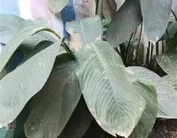 多年生草本,无茎。叶片长圆状披针形,长25-45厘米,宽约10厘米,顶端急尖,基部圆形或楔形,下部边缘波状;叶柄细长。