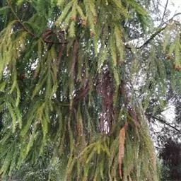 1、症状 初期小枝出现瘿瘤、新叶难以萌发、落叶,后期大枝,主干上出现瘿瘤,瘿瘤并可常年继续生长,形成巨大肿瘤,影响外观,同时小枝上长满瘿瘤。最后可导致枯死。 2、病原 一种真菌侵染引起。 3、 发病特点 病菌以菌丝体在瘿瘤组织中越冬,翌年5月孢子借风雨传播。在病虫危害严重的情况下,病原菌侵入伤口造成病害流行;整个生长季节瘿瘤均可扩展蔓延,以春秋季较快。栽培管理不善,肥水不足,树势衰弱,春季干旱,土壤粘重,空气污染等发病常重。树势衰弱和酸雨的发生对病害发生也可能有较大影响。 4、防治方法 (1)农业防治 加强水肥管理,增施有机肥,增强树势,减少发病;发病初期注意修剪瘿瘤,消除侵染源。 (2)药剂防治 严重发生的柳杉林地。可在孢子萌发传播季节,在林间喷施杀菌剂,抑制孢子萌发。药剂可用:多菌灵800倍液、50%退菌特可湿性粉剂800倍液。常用药剂 多菌灵、退菌特。