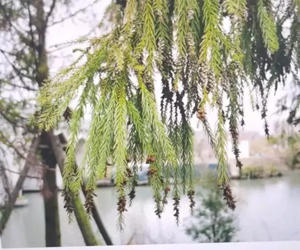 柳杉,乔木,高达48米,胸径可达2米多;树皮红棕色,纤维状,裂成长条片脱落;大枝近轮生,平展或斜展;小枝细长,常下垂,绿色,枝条中部的叶较长,常向两端逐渐变短。 柳杉 叶钻形略向内弯曲,先端内曲,四边有气孔线,长1-1.5厘米。果枝的叶通常较短,有时长不及1厘米,幼树及萌芽枝的叶长达2.4厘米。雄球花单生叶腋,长椭圆形,长约7毫米,集生于小枝上部,成短穗状花序状;雌球花顶生于短枝上。 球果圆球形或扁球形,径1.2-2厘米,多为1.5-1.8厘米;种鳞20左右,上部有4-5(很少6-7)短三角形裂齿,齿长2-4毫米,基部宽1-2毫米,鳞背中部或中下部有一个三角状分离的苞鳞尖头,尖头长3-5毫米,基部宽3-14毫米,能育的种鳞有2粒种子;种子褐色,近椭圆形,扁平,长4-6.5毫米,宽2-3.5毫米,边缘有窄翅。花期4月,球果10月成熟。