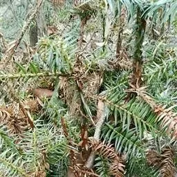 1、症状 发病初期,感病针叶上产生浅黄色或黄色病斑,感病枝条上产生黑色病斑。针叶枯死后,枝条也随之由顶端向基部死亡。在死亡的枝干、枝条纵裂的皮层上出现边缘灰白,中间黑色的盘状子实体,多时相互间可串连成片,死亡枝条由灰黑色转变为黑色,病健交界处无明显界限,剖开后可见到浅褐色的皮层及颜色更浅的水渍状木质部。 2、病原 病原为柳杉黑腐皮壳菌,隶属子囊菌亚门、核菌纲、球壳菌目真菌。无性型为柳杉壳囊孢,隶属半知菌亚门、腔孢纲、球壳孢目真菌。 3、防治 (1)抽叶前及入冬后分别喷施1:1:100的波尔多液1-2次。 (2)在开春后,新梢抽发前,在喷药防治的同时,从病健交界处切除病死枝条,切口涂波尔多液加以保护并防止水分蒸发,切下的病死枝条集中烧毁。③病苗栽植前加以及时处理或不用病苗栽植。