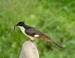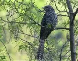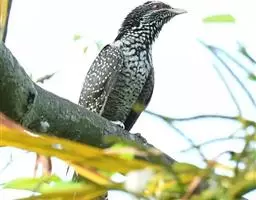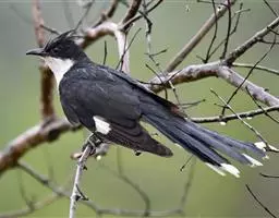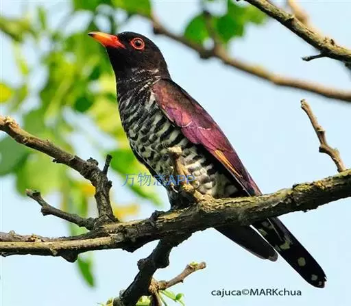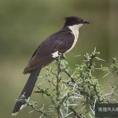 斑翅凤头鹃: 成鸟具羽冠,上体及头侧、翅、尾等黑色,具铁绿色亮辉,尾羽端部具白斑,两侧者形宽,…