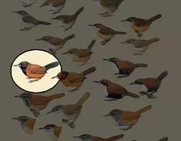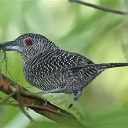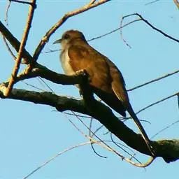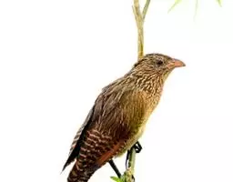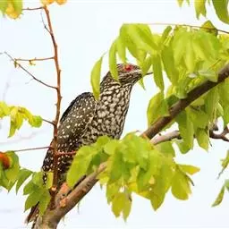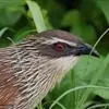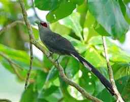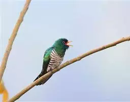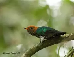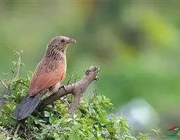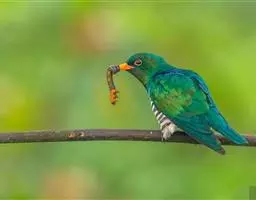 绿嘴地鹃:体形似小鸦鹃,但羽色大致绿灰;嘴绿色,头侧眼的周围有一裸区;后爪弯曲。虹膜赤红色,…