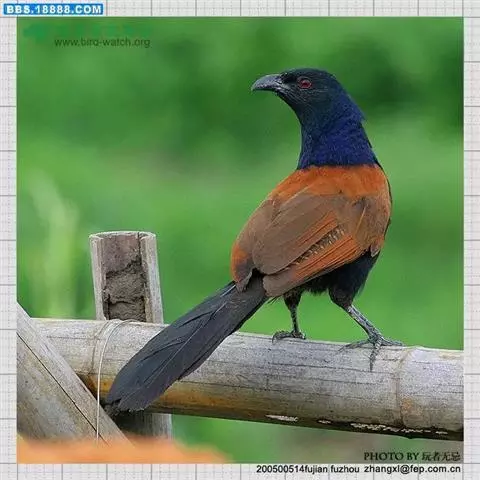 褐翅鸦鹃,是鹃形目鸦鹃科鸦鹃属的鸟类。褐翅鸦鹃的身体为黑色;头颈和胸带蓝紫色金属光泽并具黑亮的羽干纹,…