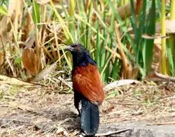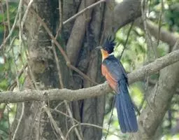 红翅凤头鹃:体长约38厘米,顶冠及凤头黑色,具显眼的直立凤头,背及尾黑色而带蓝色光泽,翅栗红色,…