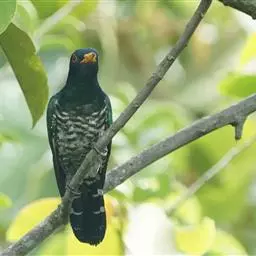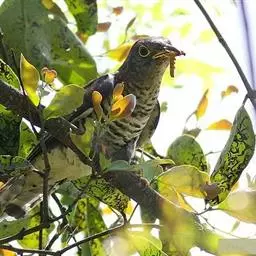 大杜鹃:是普通杜鹃的中国亚种。体长约320毫米,翅长约210毫米。雄鸟上体纯暗灰色;两翅暗褐,翅缘…