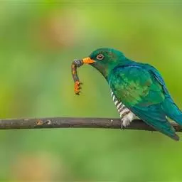 翠金鹃体长约17厘米,雄鸟上体辉绿色,头至背缀有很多棕栗色,…