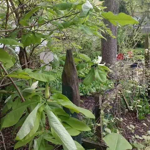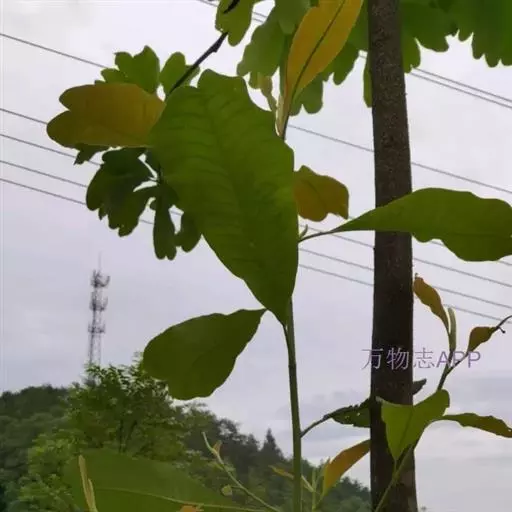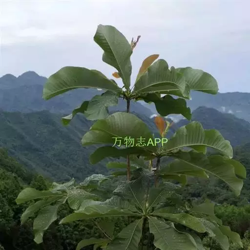 落叶乔木,高达20米;树皮厚,褐色,不开裂;小枝粗壮,淡黄色或灰黄色,幼时有绢毛;顶芽大,狭卵状圆锥形,无毛。叶大,近革质,7-9片聚生于枝端,长圆状倒卵形,长22-45厘米,宽10-24厘米,先端具短急尖或圆钝,基部楔形,全缘而微波状,上面绿色,无毛,下面灰绿色,被灰色柔毛,有白粉;叶柄粗壮,长2.5-4厘米,托叶痕长为叶柄的2/3。