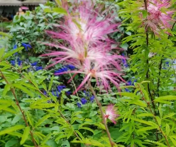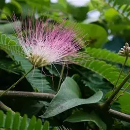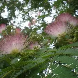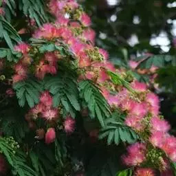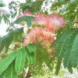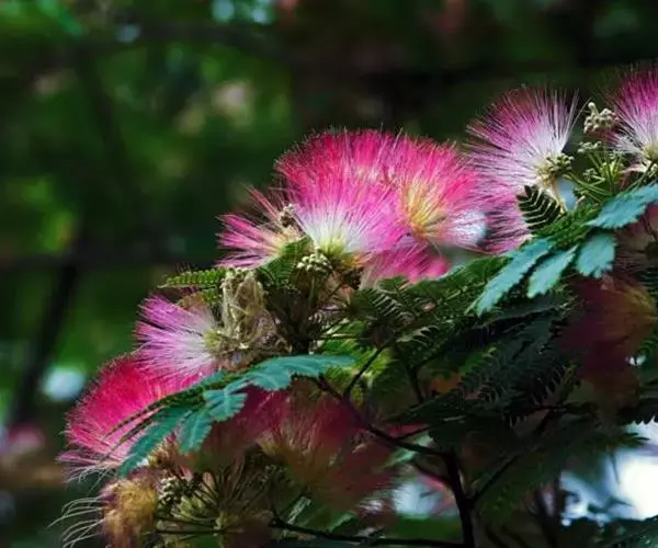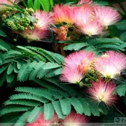 合欢花树形姿势优美,叶形雅致,树冠开阔,入夏绿荫清幽,羽状复叶昼开夜合,十分清奇,夏日粉红色绒花吐艳,十分美丽,有色有香,能形成轻柔舒畅的气氛,宜作庭荫树、行道树,种植于林缘、房前、草坪、山坡等地。是行道树、庭荫树、四旁绿化和庭园点缀的观赏佳树此外,合欢对氯化氢,二氧化抗性强,对二氧化硫有一定抗性,适于厂矿、街道绿化。