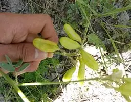 荚果带状,长9-15cm,宽1.5-2.5cm,嫩荚有柔毛,老荚无毛。花期6-7月;果期8-10月。