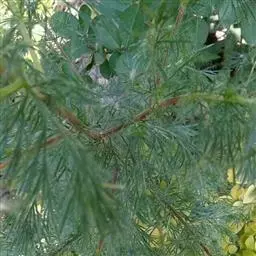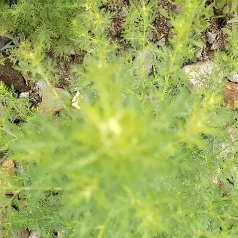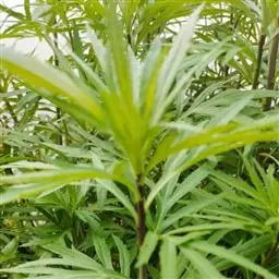菊科蒿属,叶片具有黄色斑点,散发芳香气味。株形良好,株高可达40cm,叶片羽状深裂,叶色黄绿相间,在阳光下十分醒目,花期8-9月;作为色叶类品种使用的,适应性强、生长旺盛,可以在花境、花坛、岩石园、瘠薄土地使用。