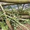 植株高30-50厘米。根状茎细长,斜升或横卧,粗4-5毫米,被黑褐色鳞片。叶密生,二型;柄长10-30厘米(不育叶的柄较短),粗1.5-2毫米,与叶轴同为禾秆色,稍光泽,光滑;叶片长圆状卵形,长10-25厘米(不育叶远比能育叶短),宽5-15厘米羽状,羽片中央沿主脉两侧各有1条纵行的灰白色带。羽片3-6对,对生,稍斜向上,上部的无柄,下部的有短柄;不育叶的下部羽片相距1.5-2(3)厘米,三角形,尖头,长2.5-3.5(8)厘米,宽1.5-2.5(4)厘米,常为羽状,小羽片2-3对,对生,密接,无柄,斜展,长圆状倒卵形至阔披针形,先端钝圆,基部下侧下延下部全缘,上部及先端有尖齿;能育叶的羽片疏离(下部的相距5-7厘米),通常为2-3叉,中央的分叉最长,顶生羽片基部不下延,下部两对羽片有时为羽状,小羽片2-3对,向上,狭线形,先端渐尖,基部下侧下延,先端不育的叶缘有密尖齿,余均全缘主脉禾秆色,下面隆起;侧脉密接,通常分叉。叶干后草质,灰绿色至褐绿色,无毛。