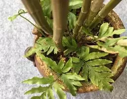 盆栽:盆栽的白羽凤尾蕨每2年需换盆1次,换盆时间在春秋季皆可进行,尽量不要伤及生长点和根。上盆时,先在盆底放2厘米厚的砂石,以利排水。撒一层碎木炭,以防腐烂。基质下层放少量骨粉或3-5个蹄片,以利根部生长。