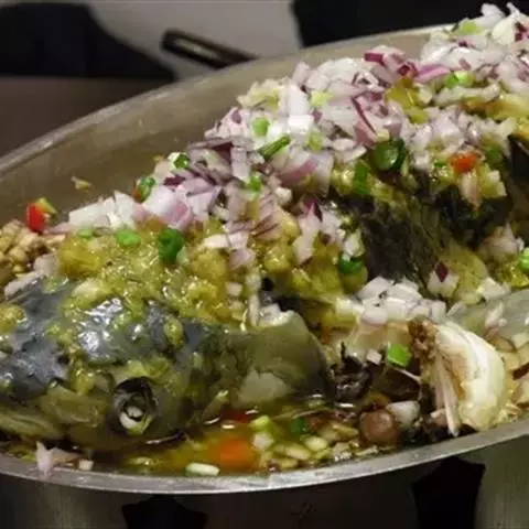 1、将1.5千克的活鱼剖腹洗净、切片,加腌鱼包1袋和适量料酒抹匀待用; 2、锅内倒入约100克植物油烧热后倒入本品调料包1袋炒香,再在锅内加入高汤或水约800克烧沸; 3、先将鱼头煮1分钟,再加入其他鱼片煮3-5分钟起锅; 4、将干料包1袋均匀洒在鱼肉上; 5、将烧至8成熟的植物油(油热冒烟)浇至干料上,放入葱节即可食用;