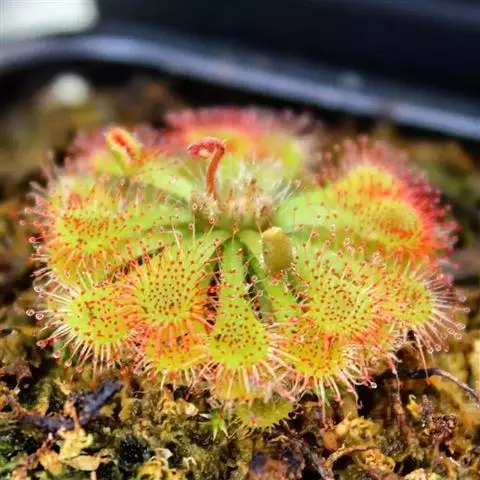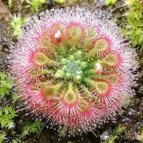 迷你茅膏菜是一类非常好种植的食虫植物,对温度要求不高,存活温度多在0-37度之间,最佳温度5-30度之间,在深秋15度以后,在植株中心的生长点会开始长出许多“冬芽”,这些冬芽会在一个月以后成熟,会像种子一样发芽成长为新的植株。