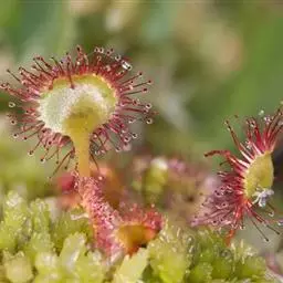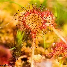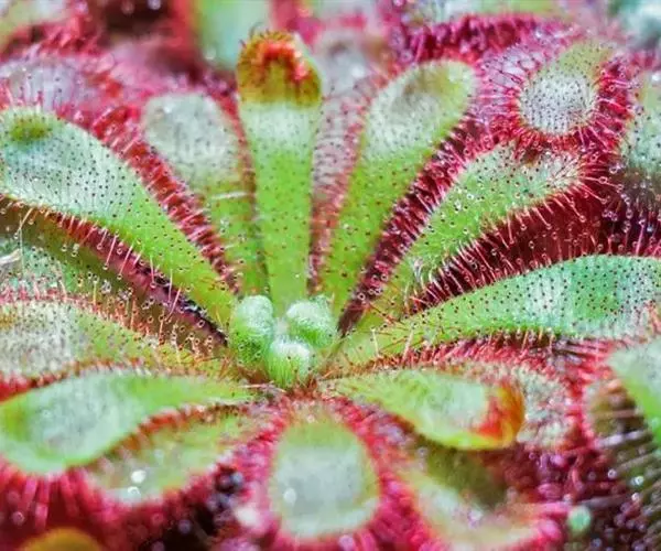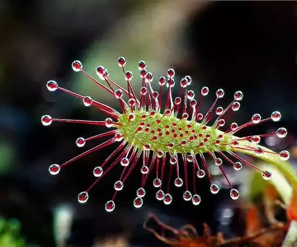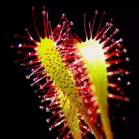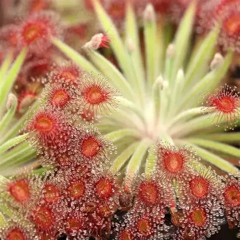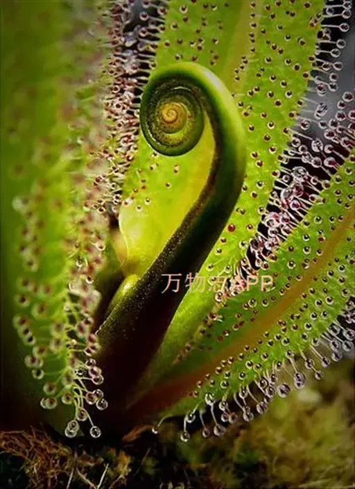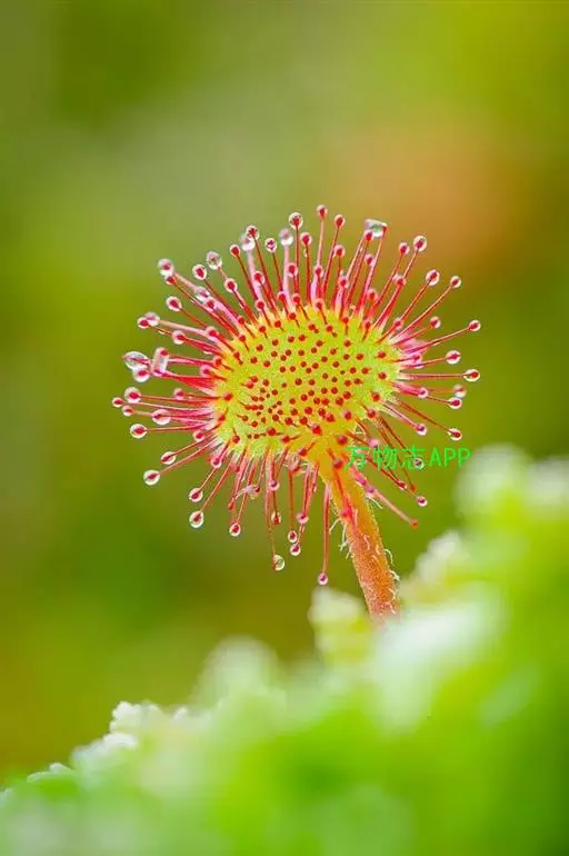 茅膏菜是食虫植物中的一个大类,它们形态各异,分布于世界各地。它的叶片密布着晶莹剔透的“露珠”,光彩夺目,深受人们喜爱。然而,对它的猎物而言,这些耀眼的光芒却是“致命”的,因为茅膏菜正是通过这些“露珠”来进行捕猎的。