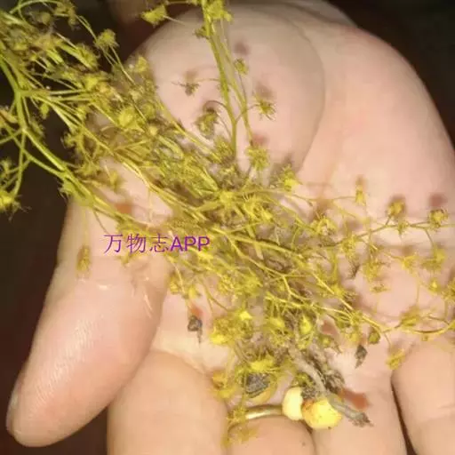 茅膏菜 全草纤细,长5-25cm。块茎球形,直径3-8mm;表面灰黑色,粗糙,先端可见凹点状茎痕;质轻,断面粉性,黄色至棕黄色,可见排列不规则的维管束小点。